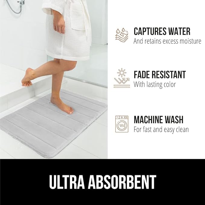 GORILLA GRIP Memory Foam Bath Mat, Soft Absorbent US Designed Bathroom Rug, Gripping Dots Machine Washable Bathmat, Cushioned Floor Mats, Shower Sink Rugs Room Décor Accessories, 24x17 Light Gray