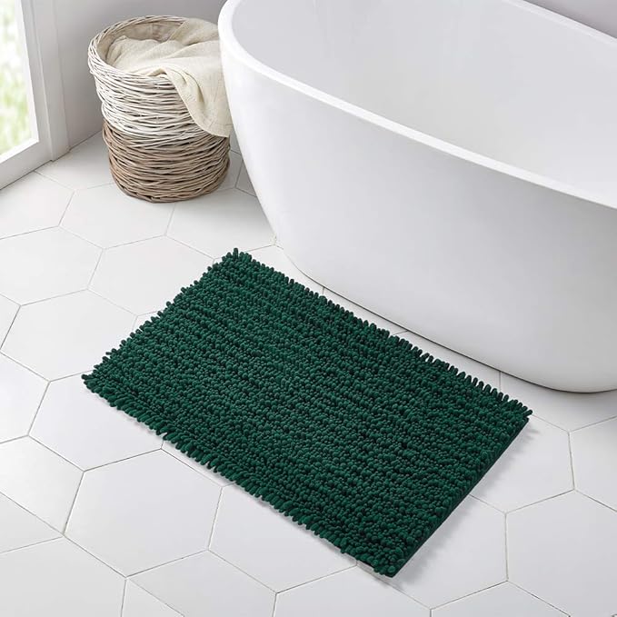 Walensee Bathroom Rug Non Slip Bath Mat (36x24 Inch Hunter Green) Water Absorbent Super Soft Shaggy Chenille Machine Washable Dry Extra Thick Perfect Absorbant Best Large Plush Carpet For Shower Floor