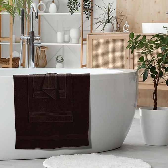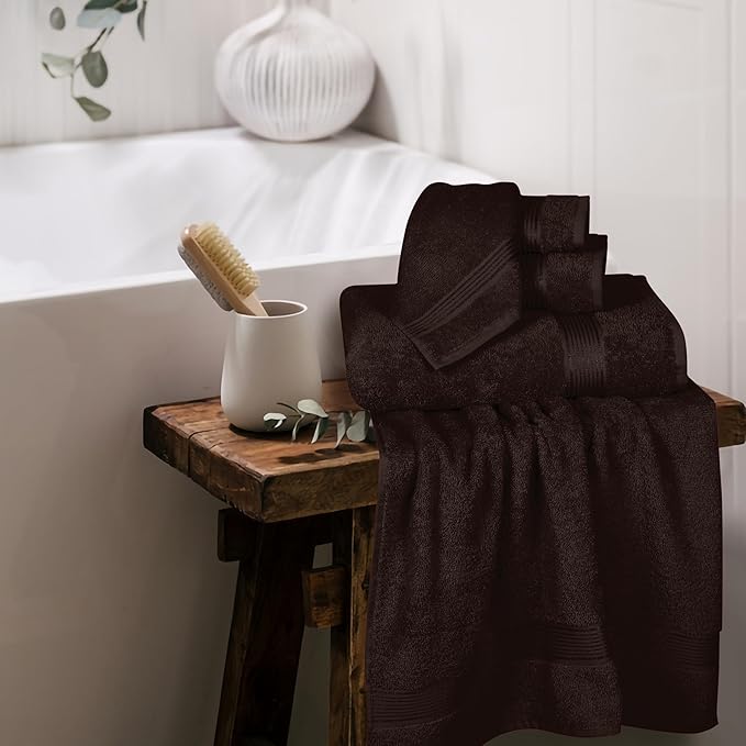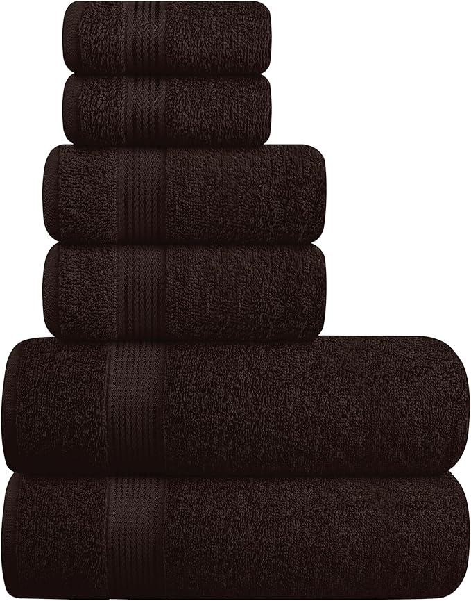 Belizzi Home Ultra Soft 6 Pack Cotton Towel Set, Contains 2 Bath Towels 28x55 inch, 2 Hand Towels 16x24 inch & 2 Wash Coths 12x12 inch, Ideal for Everyday use, Compact & Lightweight - Brown