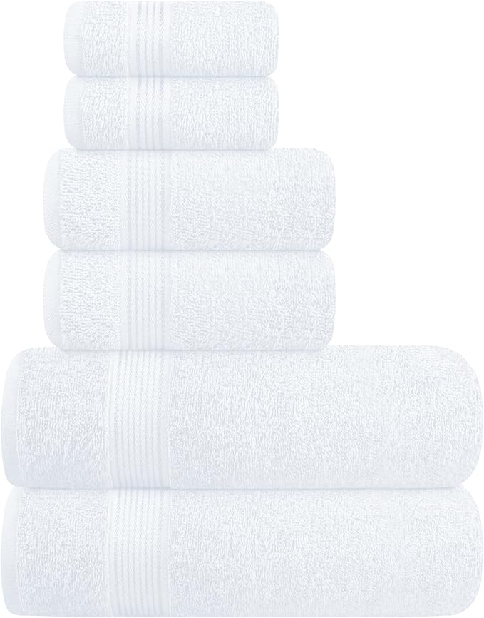 Belizzi Home Ultra Soft 6 Pack Cotton Towel Set, Contains 2 Bath Towels 28x55 inch, 2 Hand Towels 16x24 inch & 2 Wash Coths 12x12 inch, Ideal Everyday use, Compact & Lightweight - White