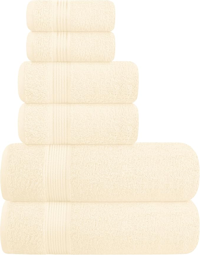 Belizzi Home Ultra Soft 6 Pack Cotton Towel Set, Contains 2 Bath Towels 28x55 inch, 2 Hand Towels 16x24 inch & 2 Wash Coths 12x12 inch, Ideal for Everyday use, Compact & Lightweight - Ivory