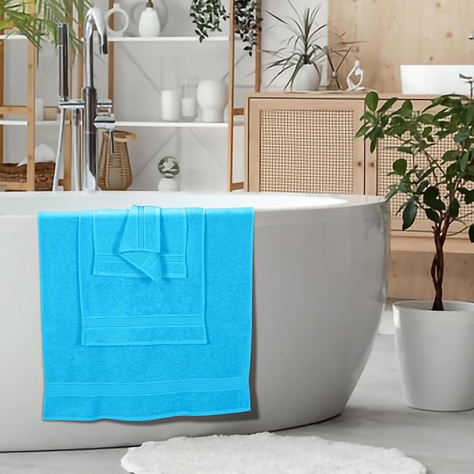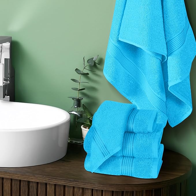 Belizzi Home Ultra Soft 6 Pack Cotton Towel Set, Contains 2 Bath Towels 28x55 inch, 2 Hand Towels 16x24 inch & 2 Wash Coths 12x12 inch, Ideal for Everyday use, Compact & Lightweight - Turquoise Blue