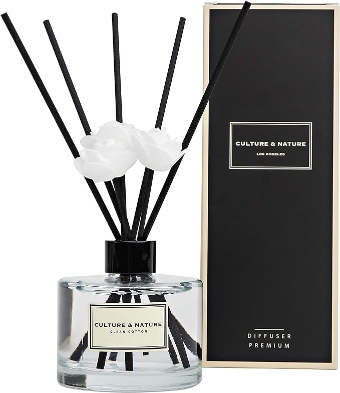 CULTURE & NATURE Reed Diffuser Set 6.7oz (200ml) Clean Cotton Scented Diffuser with Sticks Home Fragrance Reed Diffuser for Bathroom Shelf Decor