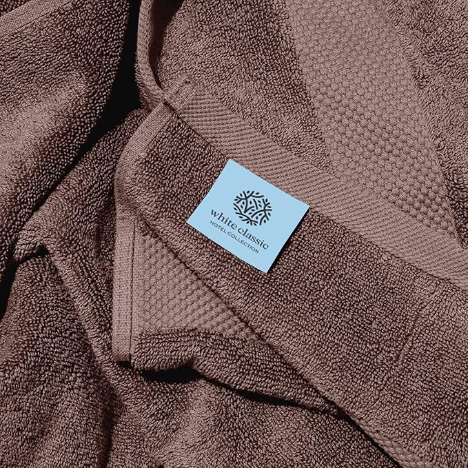 White Classic Luxury Bath Towels Set of 4 Large - 700 GSM Cotton Ultra Soft Bath Towels 27x54 | Highly Absorbent and Quick Dry | Hotel Towels for Bathroom Luxury, Plush Shower Towels, Brown