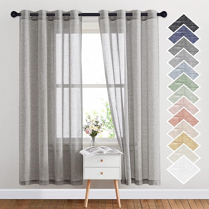 NICETOWN Sheer Curtains Open Linen Blend for Bedroom Windows, Grommet Natural Linen Flax Texture Privacy with Light Filter Vertical Drapes for Living Room, Charcoal Grey, W52 x L72, 2 Panels