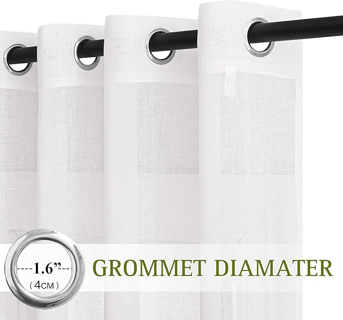 - READY MADE: Package includes 2 flax sheer linen curtain panels, each measures 52"W (104"W for pair), with 8 (1.6" inner diameter) silver grommets to suit with standard or decorative curtain rod.