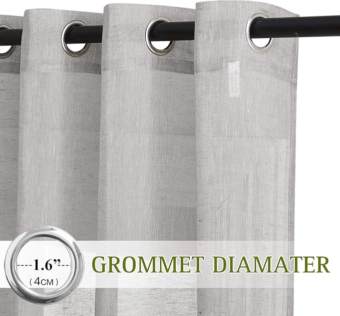 - READY MADE: Package includes 2 flax sheer linen curtain panels, each measures 52"W (104"W for pair), with 8 (1.6" inner diameter) silver grommets to suit with standard or decorative curtain rod.