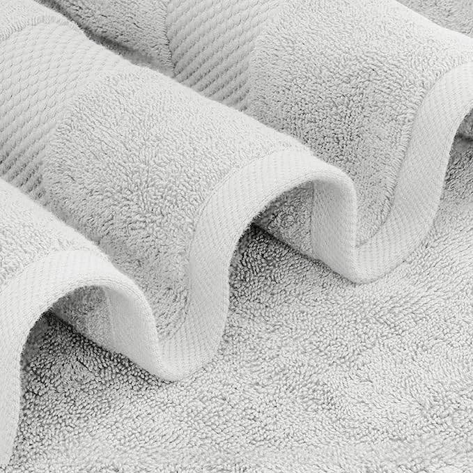 White Classic Luxury Bath Towels Set of 4 Large - 700 GSM Cotton Ultra Soft Bath Towels 27x54 | Highly Absorbent and Quick Dry | Hotel Towels for Bathroom Luxury, Plush Shower Towels, Silver