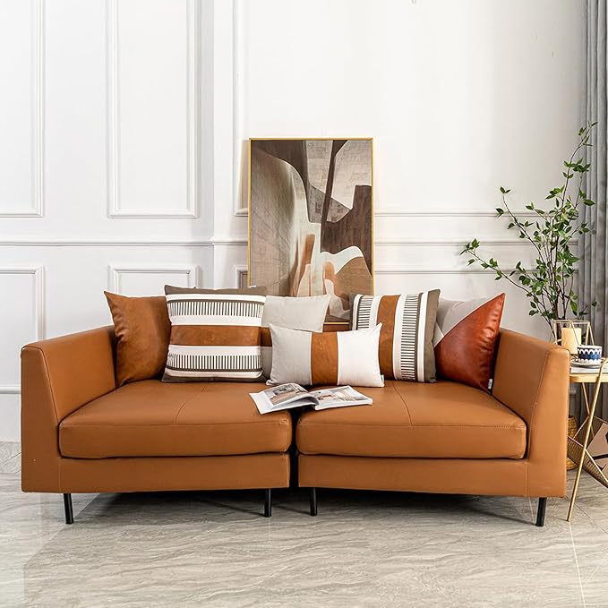 Farmhouse Throw Pillow Covers for Couch Sofa Decorative Faux Leather Square Cushion Cover Tribal Stripe Accent Pillow Case 18 x 18 Inch,Dark Coffee