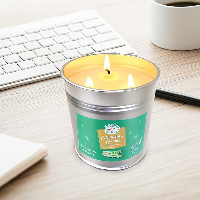 - NATURAL SOY WAX - The large citronella outdoor candle is made from natural soy wax and essential oils from the citronella plant.