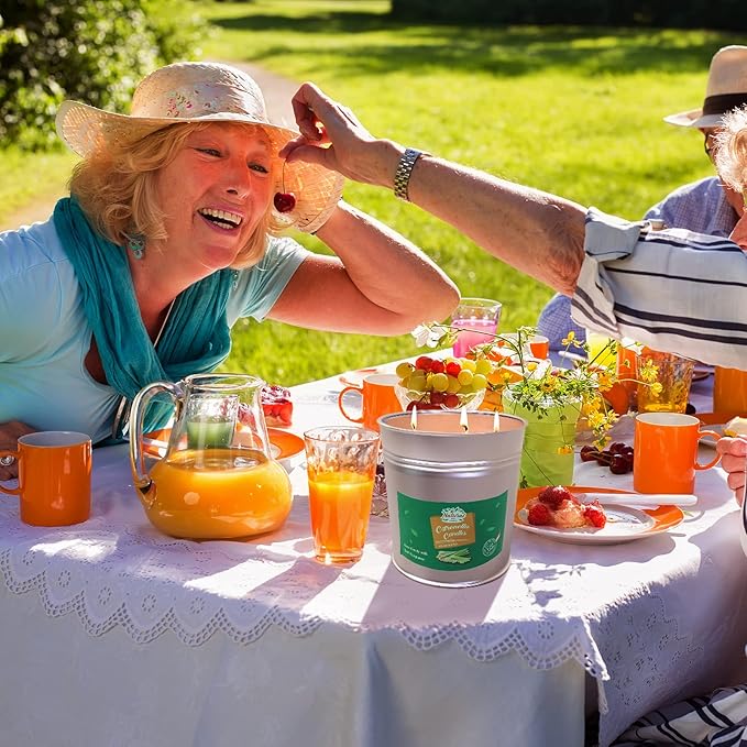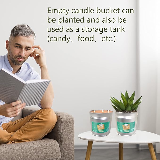 Large 3 Wicks Bucket Citronella Candle for Outdoor Camping Natural Soy Wax Bugs Away Fly Off Lemongrass Scented Candle for Indoor Porch Backyard Deck Garden Outside Picnic Party Wedding Tabletop