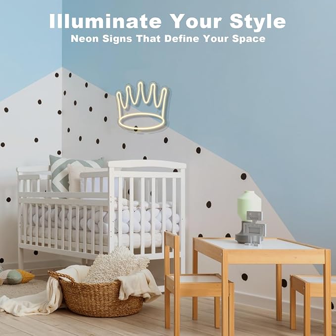 - 👑Art crown neon sign -- The warm neon light of the crown can create an interesting and lively atmosphere for a small apartment or any room, wall or shelf.Cute and modern led light sign design is also a favorite bedroom wall decoration solution for children.