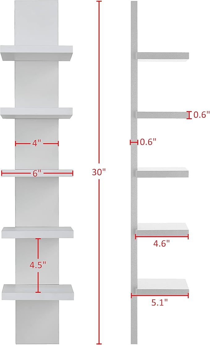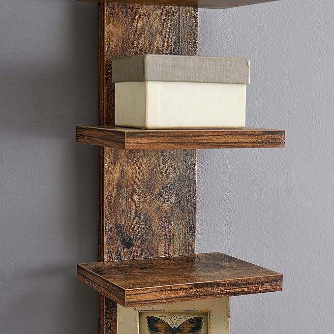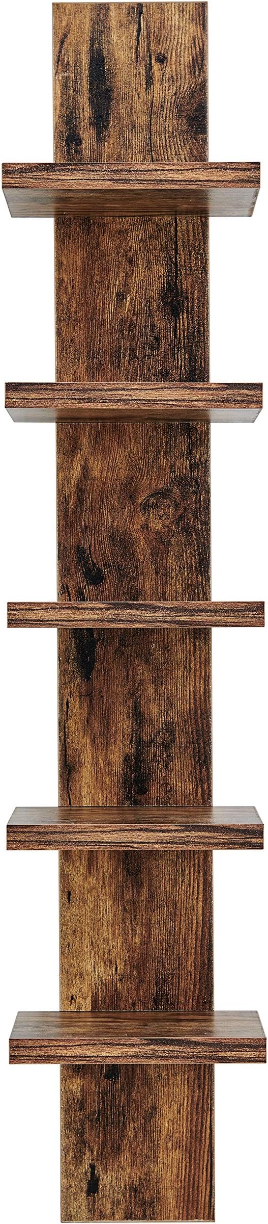Danya B 5 Tier Wall Shelf Unit Narrow - Vertical Column Ladder Shelf, Floating Storage, Home Decor Organizer, Tall Tower Design, Utility Shelving, Bedroom, Living Room (Pine)