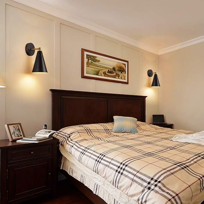 MWZ Modern Black Wall Sconces Lighting, 2 Pack Gold Rustic Lamp Fixture Farmhouse Simplicity Bronze Finish Arm Swing Industrial Wall Lights for Bedroom,Living Room,Reading,Kitchen
