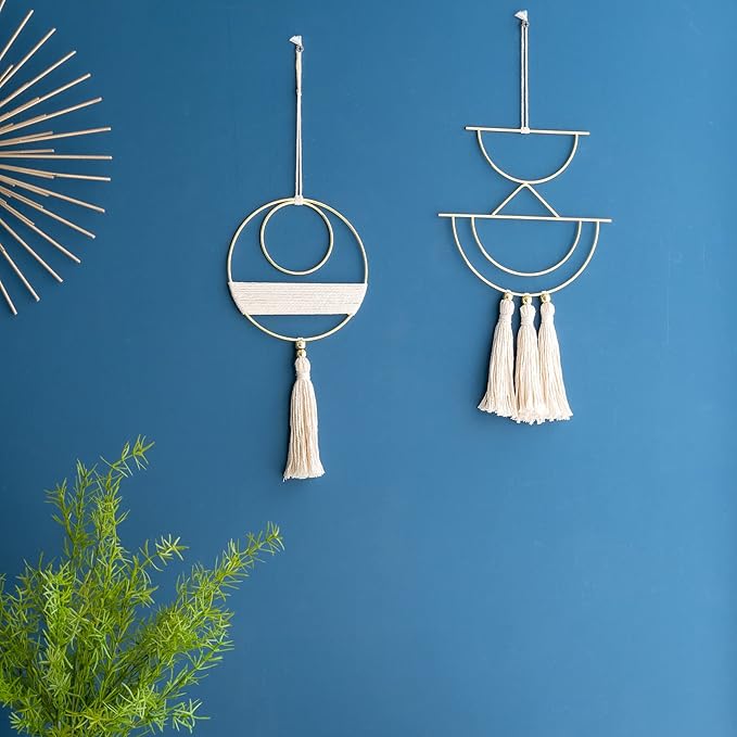 • Unique Design: The design conbines high quality iron with golden powder cover and handmade cotton tassels. Bohemia style wall hangings are great decoration for any space. And they will match well with your home style as well.