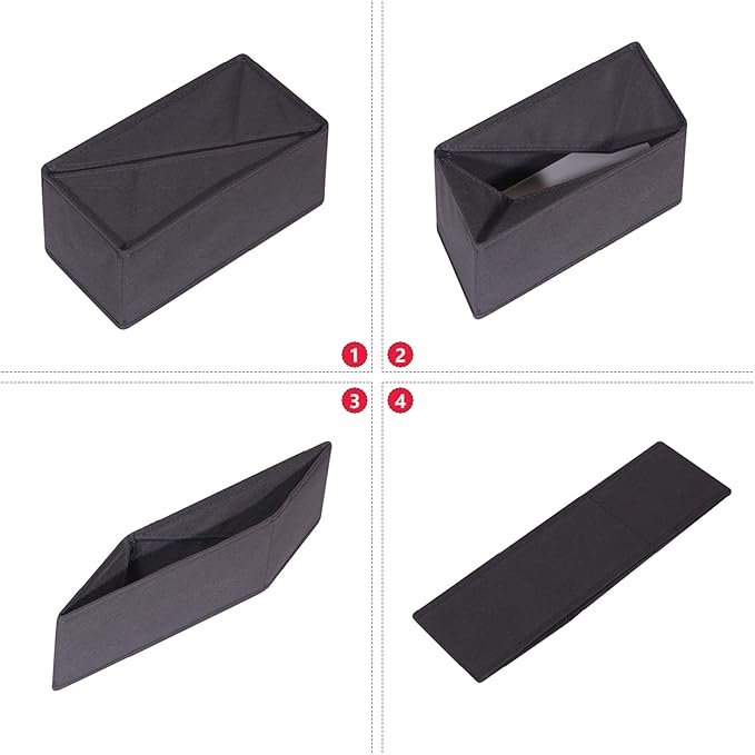 - Made from non-woven fabric and Cardboard. Dresser drawer organizer measurements are: 11" X 5.5" X 4.7". Color: Dark Grey. Set of 6.