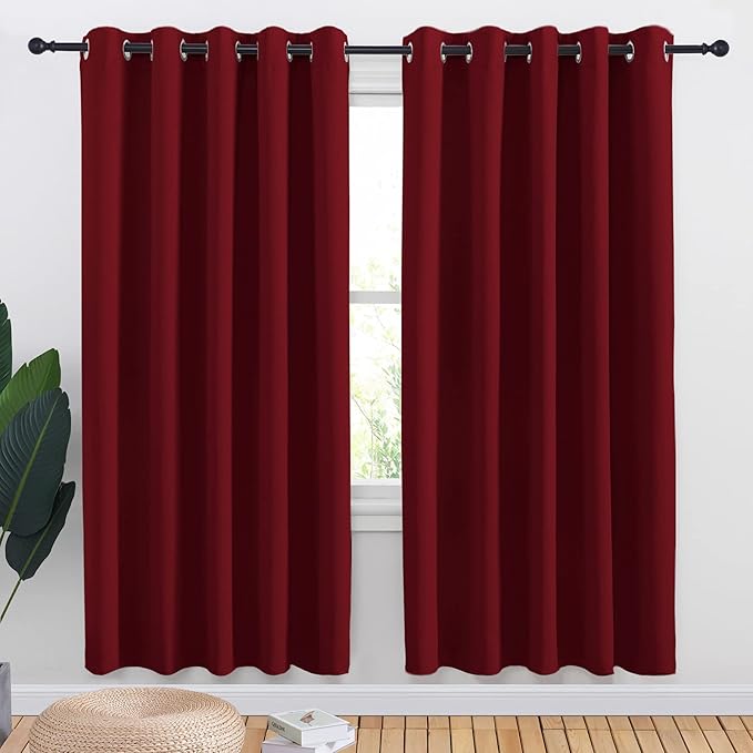 NICETOWN Christmas Burgundy Bedroom Curtains Blackout Draperies, Home Decorations Thermal Insulated Solid Grommet Top Blackout Drapes for Cafe (One Pair, 70 x 72-inch)