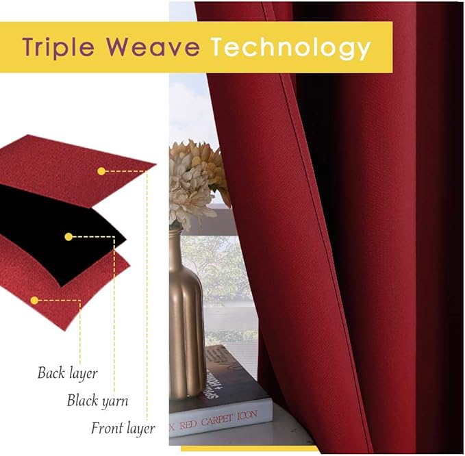 - MULTI-FUNCTION: Super heavy and soft Blackout Curtain Panels are very upmarket. Besides, 85%-99% light blocking, thermal insulated, soundproof, Fade-resistant, energy-efficient. Thread trimmed and wrinkle-free, both sides are the same color.