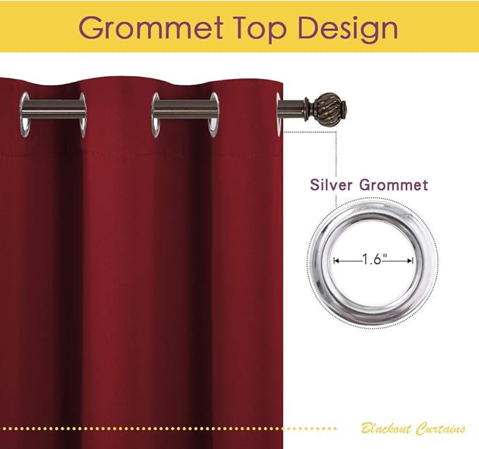 - ELEGANT DESIGN: 2 panels per package. Each Blackout Curtain measures 70" wide x 72" long. The design of silver grommet (1.6-inch inner diameter) creates casual elegance for your house, which makes the curtains easy to install and slide.