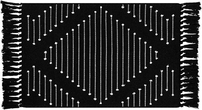 - Black and white bathroom rug: Features a geometric design with a modern visual aesthetic,the extra knot stripes of both side add a lovely and trendy touchb.Available in black, blue,green and rust red ,ideal for bathroom mat,kitchen sink rug, entryway rug,or front door rug