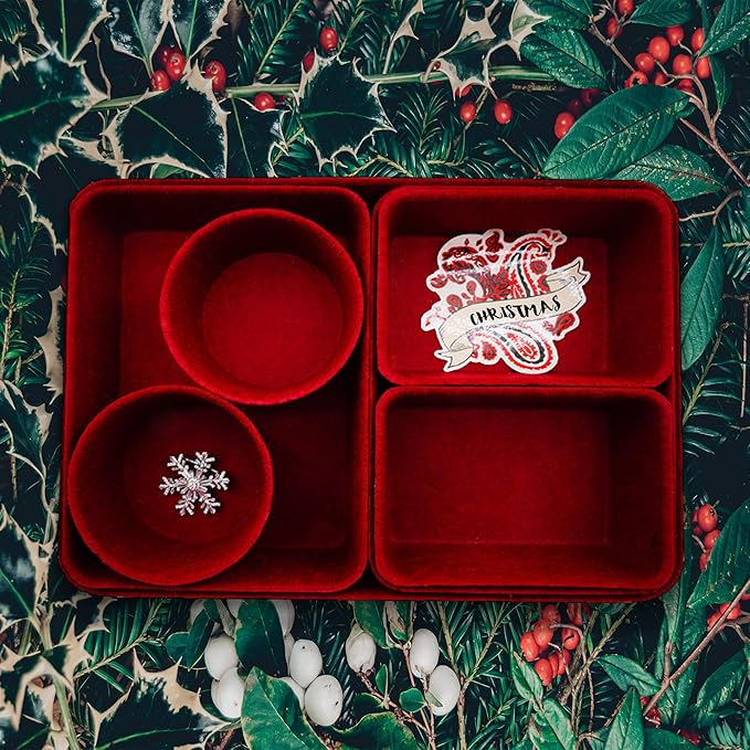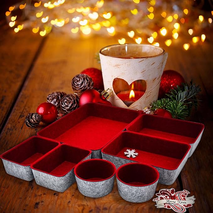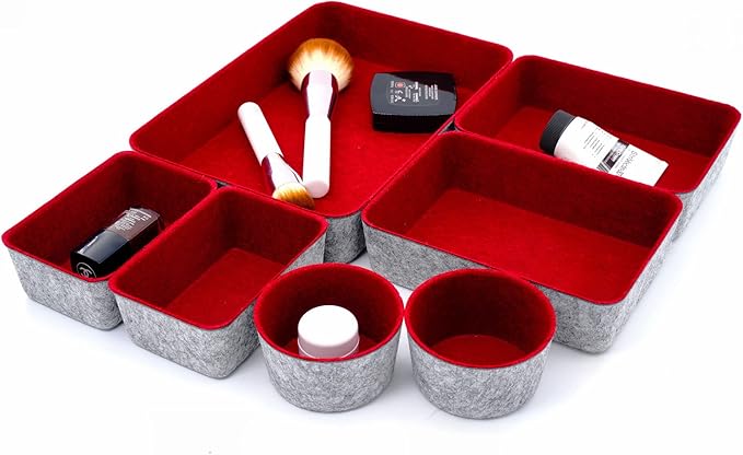 Welaxy Drawer organizers trays felt storage bins drawers dividers organizer boxes for office home interior cozy decor Gifts pack 7-pieces (Maroon)