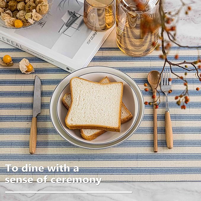 Home Brilliant Placemats Set of 6 Heat Resistant Dining Table Place Mats for Kitchen Table Non Slip Easy to Clean Wipeable Washable Place Mats, 13 x 19 inches, Stripes, Dusk Blue