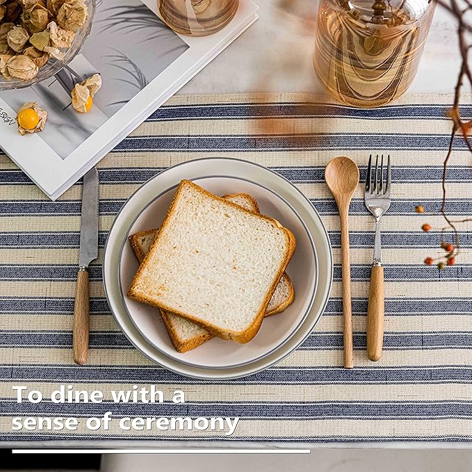 Home Brilliant Placemats Set of 6 Heat Resistant Dining Table Place Mats for Kitchen Table Farmhouse Rustic, 13 x 19 inches, Stripes, Navy Blue and Beige