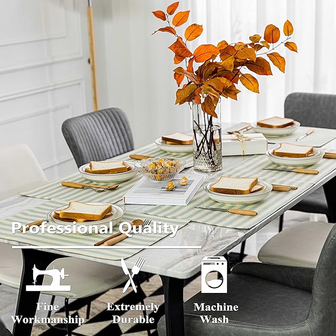 Home Brilliant Placemats Set of 6 Heat Resistant Dining Table Mat for Kitchen Table Dinner Decor, 13 x 19 inches, Stripes, Sage Green