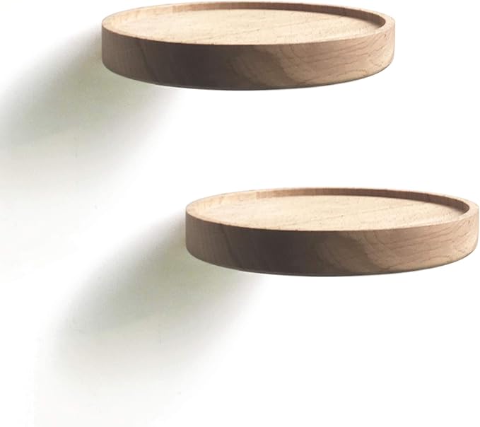 Coracle Floating Shelf Wood Round Wall Mounted Showcase Wall Shelf Hanging Planter Storage Wooden Shelf for Plants Photo Candle Invisible Wall Decoration Design Set of 2 (Diameter Ø5.9 inch)