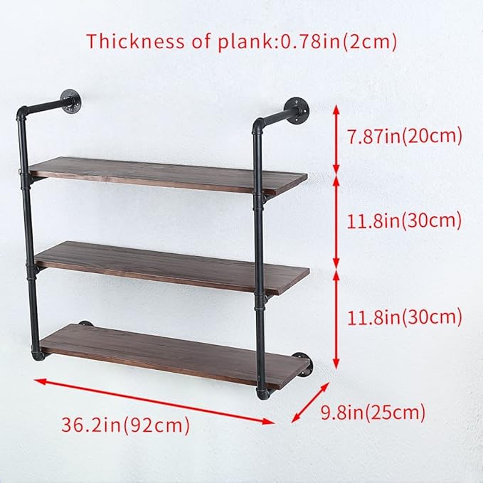 Industrial Pipe Shelving Wall Mounted,36in Rustic Metal Floating Shelves,Steampunk Real Wood Book Shelves,Wall Shelf Unit Bookshelf Hanging Wall Shelves,Farmhouse Kitchen Bar Shelving(3 Tier)