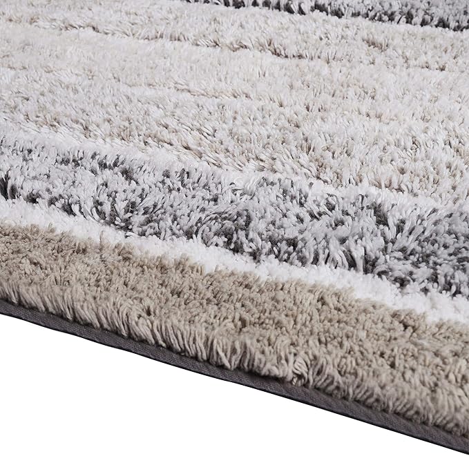 Bathroom Rugs Set 2 Piece Light Grey Alpine Stripe Non-Slip Cotton Bath Mats for Bathroom Floor |Quick Dry Bathroom Mat for Tub Spa Shower|Living Room Entry Way Door Mats |21x32 & 17x24 Inches