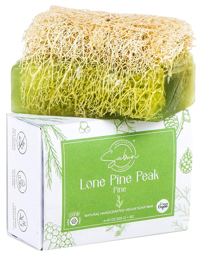 SABUN CO. Pine Oil Loofah Soap - Natural, Handmade, Moisturizing, Exfoliating Luffa Soap for Men | Face & Body Scrub Bar [4.40 oz - 125 gr]