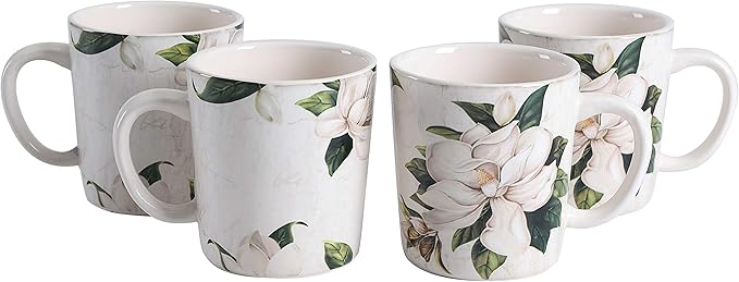 Bico Magnolia Floral Ceramic Mugs, Set of 4, for Coffee, Tea, Drinks, Microwave & Dishwasher Safe