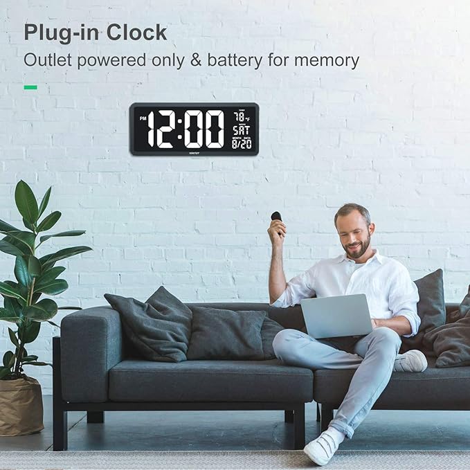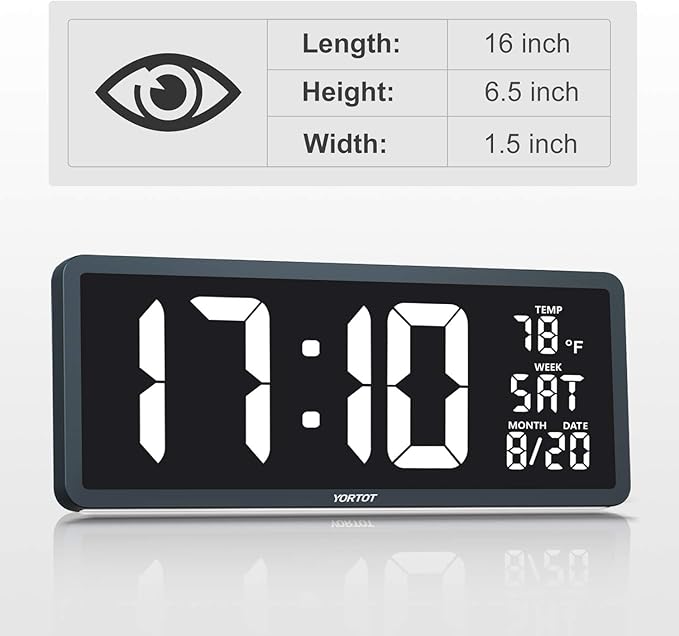 - 【REMOTE CONTROLLED 16-INCH DIGITAL WALL CLOCK】 The YORTOT digital wall clock measures a massive 16 inches in length, making it easy to see and read even from a distance. In addition to the time. The date, day of week, and temperature is also clearly displayed. It is perfect for large spaces. such as gyms, shops, warehouses, garages, or classrooms, offices, as well as your living room, kitchen, and even the bedroom!