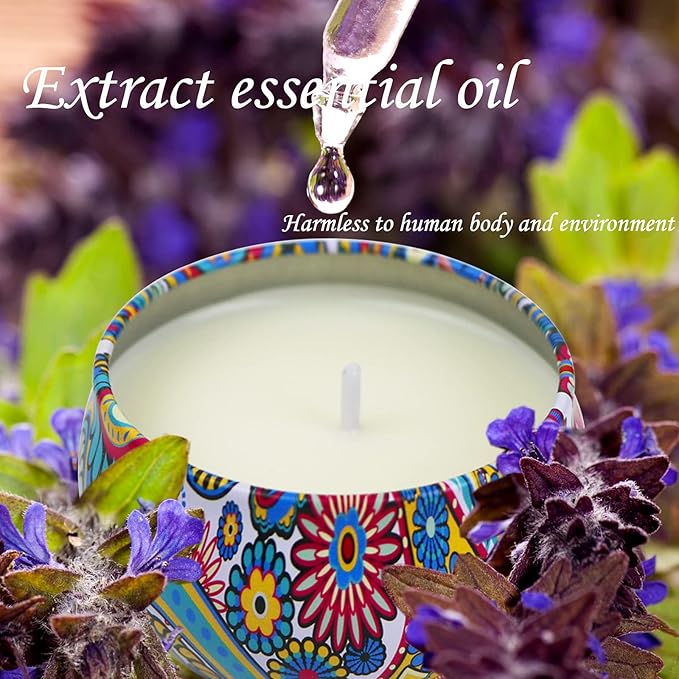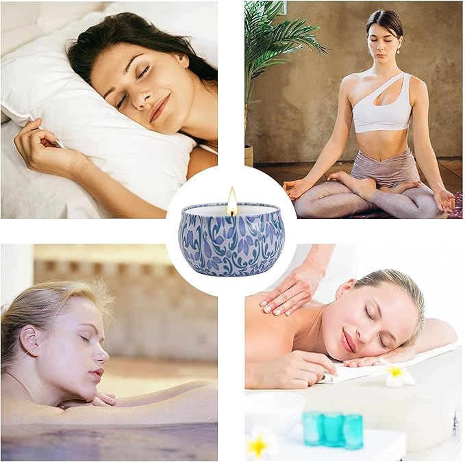 - [Portable Travel Candle Tin Set]: The 2.5 oz small aromatherapy candles set can be carried easily, suitable for business or travel. A familiar taste would be found in a strange place relieving fatigue and improving sleep quality.
