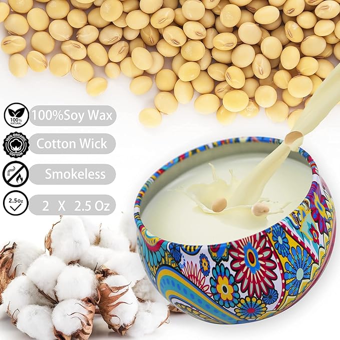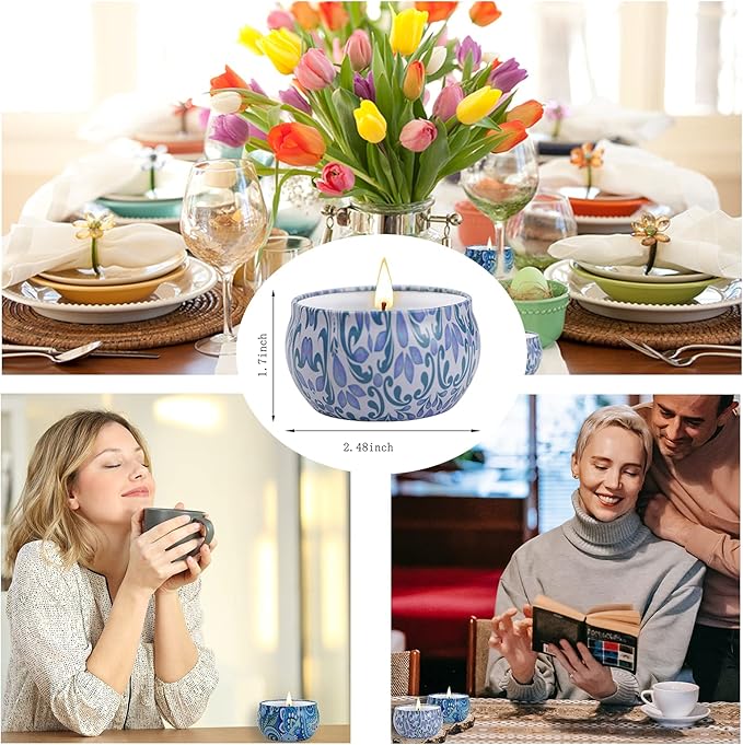 - [Special Gifts]: The natural soy candle tin set is designed with unique floral and comes with exquisite packages, an ideal gift for home scented, birthday, anniversary, Christmas or any special day.