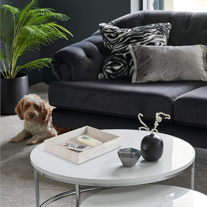 HofferRuffer Elegant Desktop Organizer, Vanity Tray, Bathroom Storage Tray Holder, Dresser Jewelry Tray, Change Coin Key Watch Catchall Tray, 10.2 x 8.4 x 1.8 inches (Light Grey Faux Leather Shagreen)