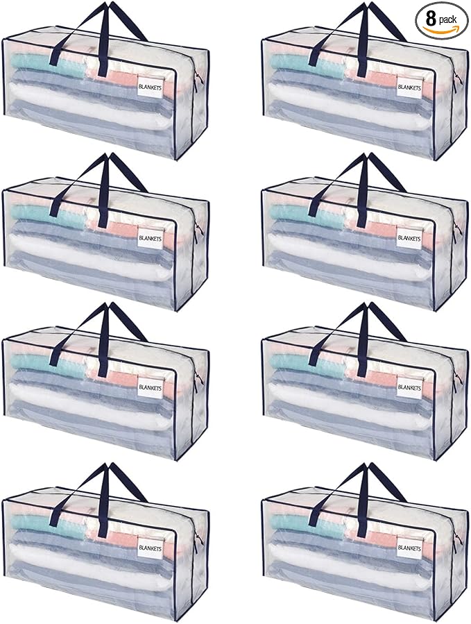 VENO 8 Pack Moving Bags w/Backpack Straps, Heavy Duty, Moving Boxes Alternative, Packing Supplies, Large Storage Totes for Dorm Room Essentials with Zipper for Clothes (Clear, 8 Pack)