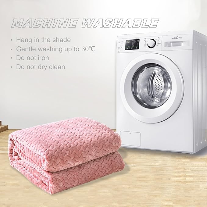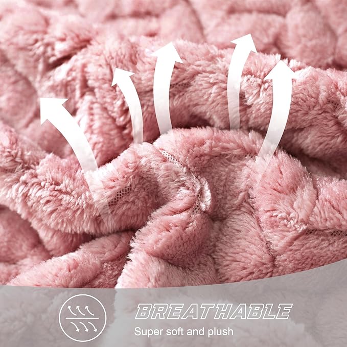 Exclusivo Mezcla Pink Fleece Queen Size Blanket for Bed, 90x90 Inches Soft Cozy Jacquard Flannel Blankets, Lightweight Fuzzy Plush Warm for All Seasons