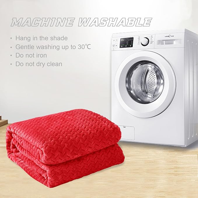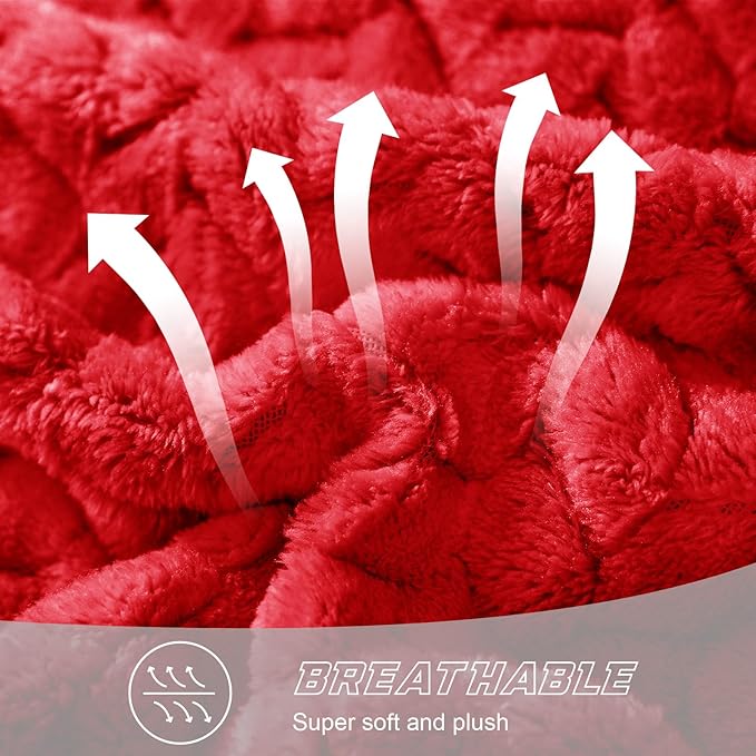 Exclusivo Mezcla Red Fleece King Size Blanket for Bed, 90x104 Inches Soft Cozy Jacquard Flannel Blankets, Lightweight Fuzzy Plush Warm for All Seasons