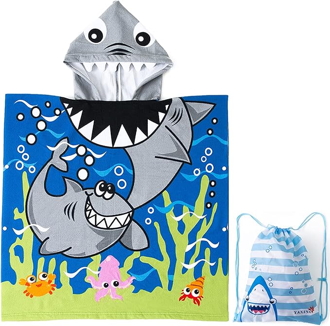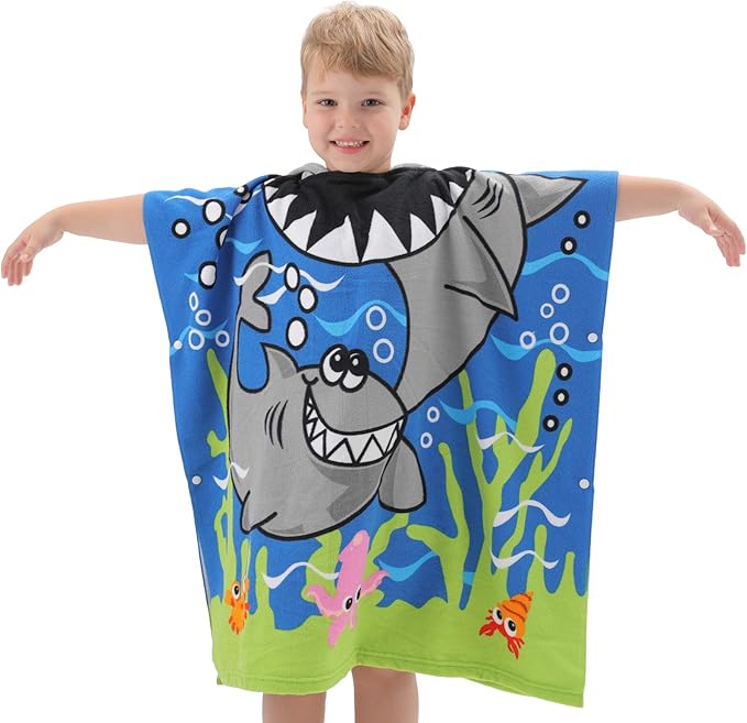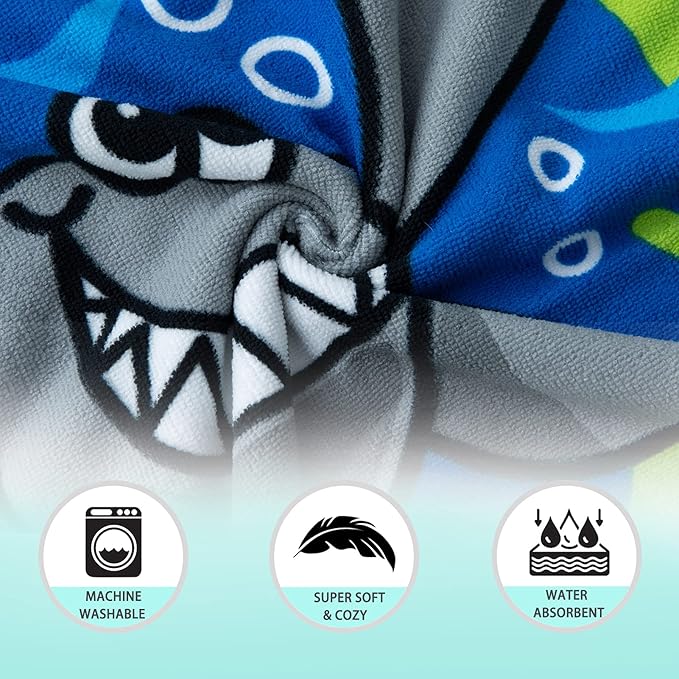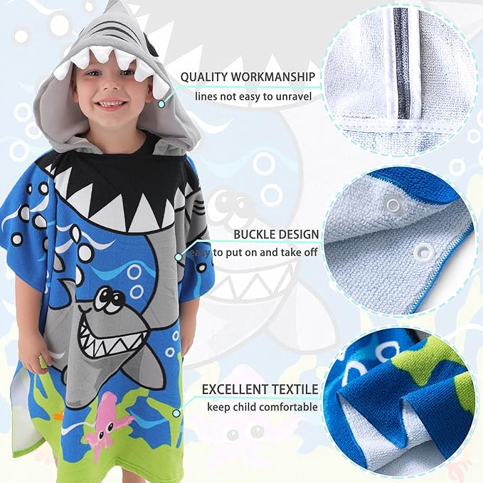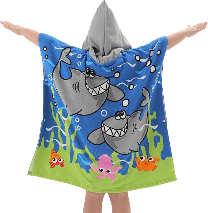 - Cute Cartoon Design: We have designed various patterns for kids beach towel poncho, mermaid, astronaut, shark, dinosaur, pirate and more. Fully in line with baby's preferences, the color of the toddlers hooded bath towel is also based on children's vision. Let them bathe, travel on the beach, and swim in the pool beach become more interesting and meaningful.