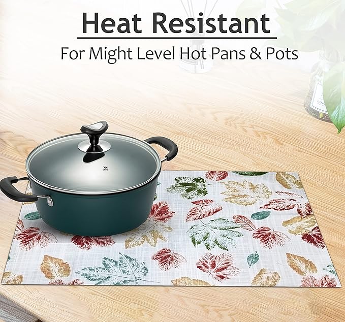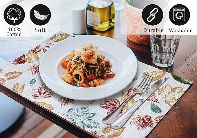 Ruvanti Placemats 100% Cotton 13x19 Inch, Dining Table Placemats Set of 6, Modern Place Mats for Dining Table Decor, Kitchen & Table Linens, Coffee Mat for Christmas Dinners - Stamped Leaves