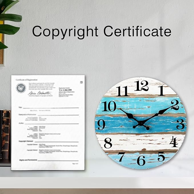 - 3-[Easy to Read] - With wooden colorful beachy ocean face wall clock measures 10” inches diameter and easy to read with black large Arabic numerals and hands, even from side.
