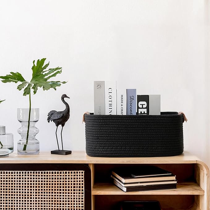 - Stylish Design: The rectangle basket is designed with sturdy cotton rope. The handles on both sides are wrapped in brown leather. It is easy to carry and adds a stylish touch to your living space