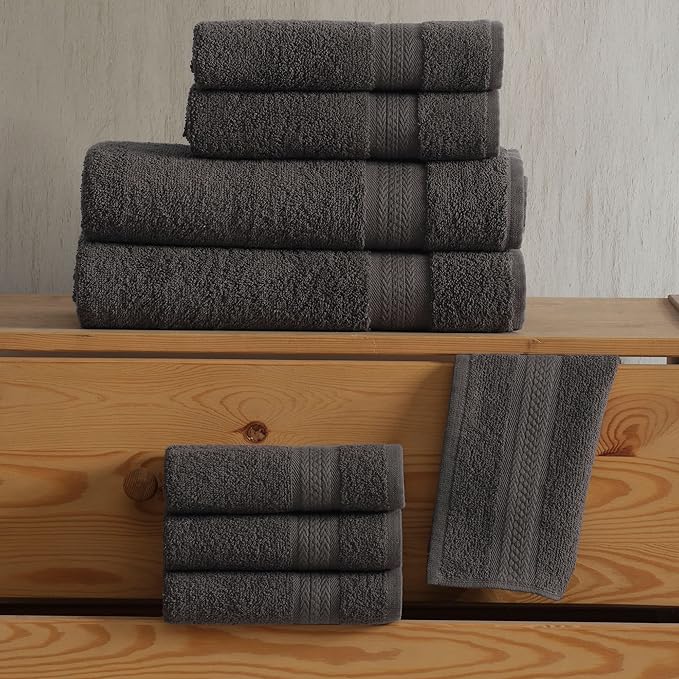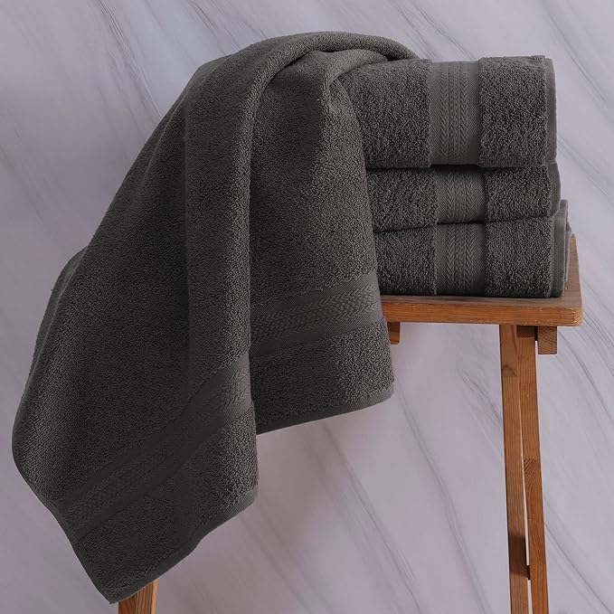 REGAL RUBY 4 Pack Grey Bath Towels Quick-Dry High Absorbent 100% Turkish Cotton Towel for Bathroom, Guests, Pool, Gym, Camp, Travel, College Dorm, Shower