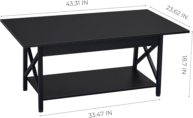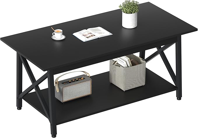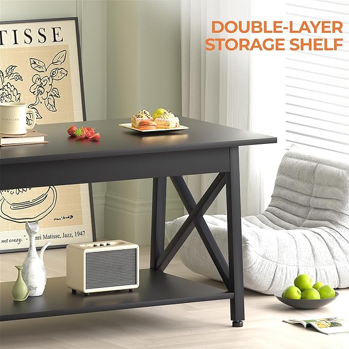 GreenForest Coffee Table with Storage, 43 inch Large Modern Coffee Tables for Living Room, X-Frame Design Farmhouse Coffee Table Space Saving Living Room Tables, Easy Assembly, Black