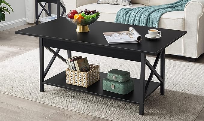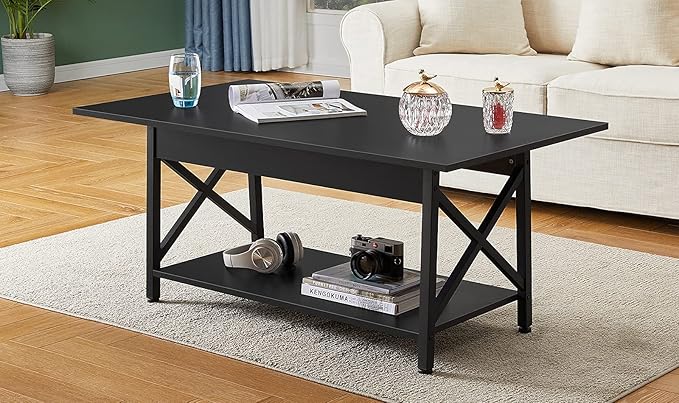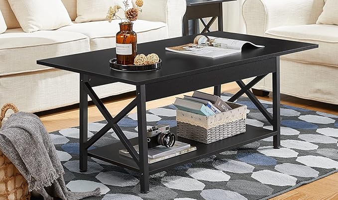 - Coffee Table with Storage: 2 tier storage shelf provide large storage and display space for the items you use and decorative things