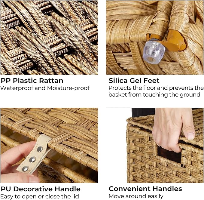 - Handwoven Craftsmanship - Greenstell laundry hampers are made of durable synthetic rattan materials that are waterproof. The laundry basket is made by professional craftsman, and each piece is unique, so there are subtle differences. Waterproof, adjustable foot pads are added to prevent the clothes from touching the floor. Bright natural veneers and delicate weaving work well with any style of furniture design, lightweight, durable, and can be used in your bedroom bathroom
