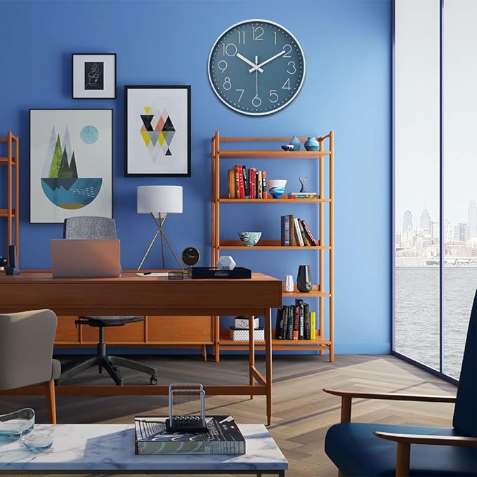 jomparis 12 Inch Silent Non-Ticking Battery Operated Quality Quartz Round Wall Clock Modern Decor Clock for Home Office Bedroom Bathroom(Cerulean Color)