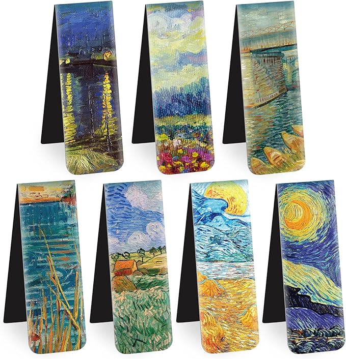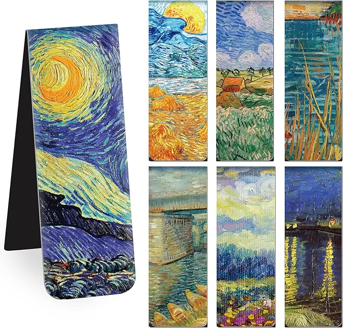 - [Bookmark set]- 14PCS Magnetic Bookmarks, 7 Different impressionist paintings designs, 2 of each design.A selection of Van Gogh's famous paintings,bright colors and artistic pattern, easily get noticed and meeting your daily using.